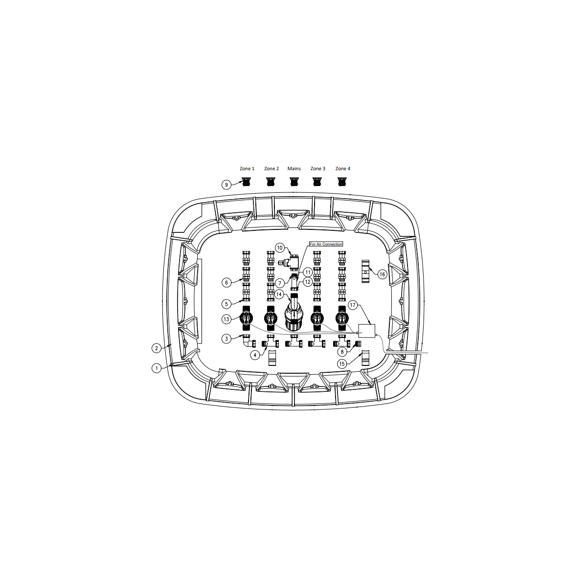 - Ein Entlüftungsanschluss ist vorhanden, um das Wasser nach der Saison mit Hilfe von Luftdruck über eine Geka-Kupplung abzulassen