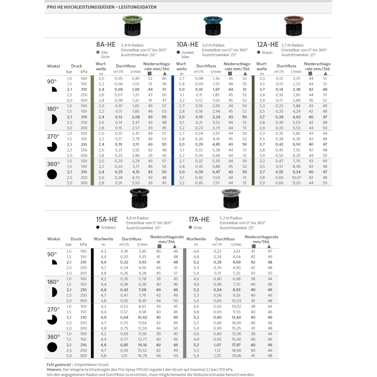 - Mit Versenkregner Pro-Spray PRS30 zur Druckregulierung auf 2,1 bar (210 kPa) kombinieren