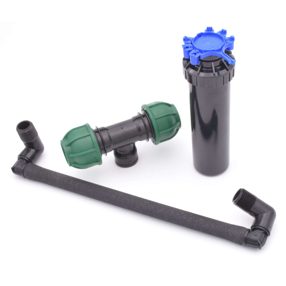 Praktisches Set bestehend aus Regner, Gelenkanschluss, Düsenset und Verbinder.